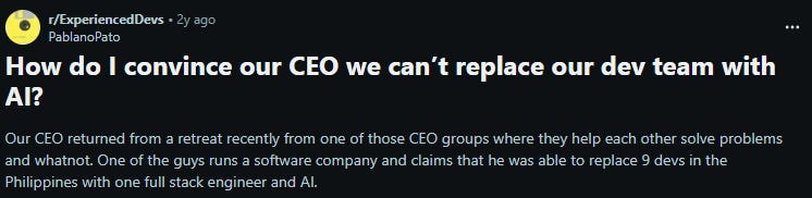 I am currently conducting interviews on how organizations deploy developer experience initiatives, and some are confirming they are having challenging discussions with managers who believe they can save significant costs by replacing (not augmenting) developers with AI, inspired by questionable metrics.